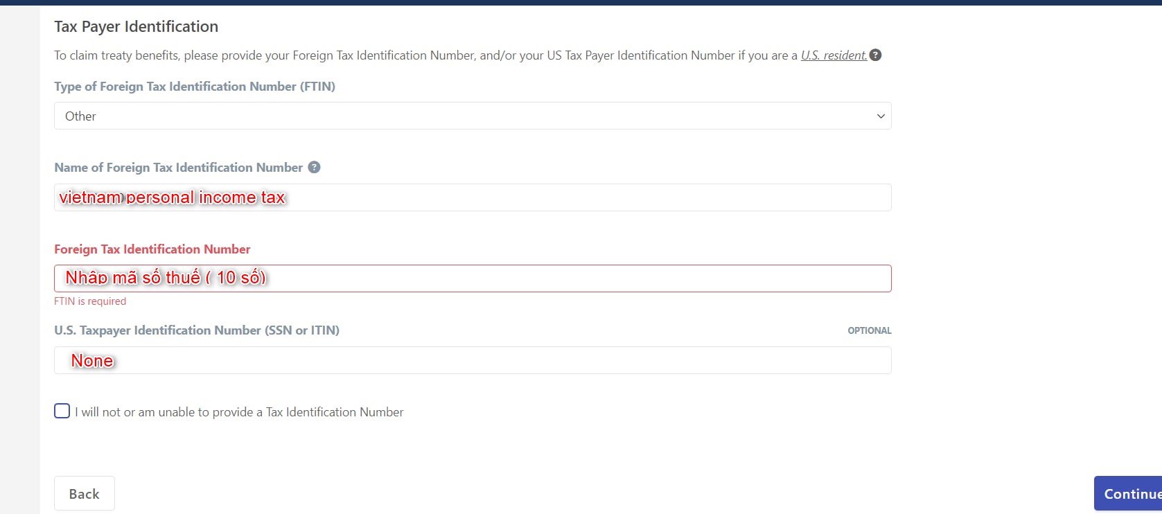 Chú ý: Phần điền tax form có chút update như ảnh dưới nhé: